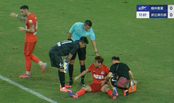 比赛第23分钟,此前就有受伤情况的梅州场上队长廖均健再次倒地走漏无法坚抓比赛,随后他被杨瑞琦换下。