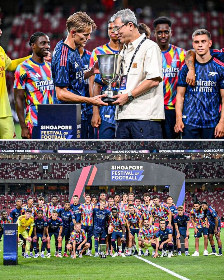 阿森纳季前赛赛后授奖智商,厄德高不碰杯&把奖杯放地上敕令合影