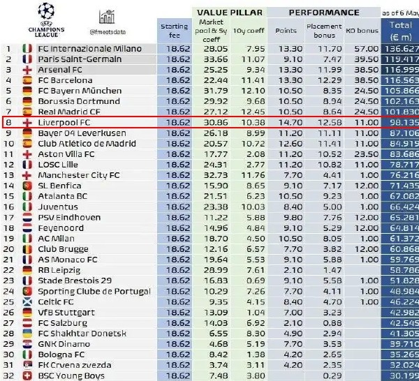 a. 畴昔的这个赛季:利物浦多赚了1亿欧元