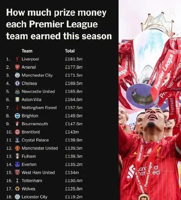 变成昭彰对比的是,上赛季利物浦在英超赢得冠军,他们能够得回1.815亿英镑奖金(近2.1亿欧)。更要紧的是,利物浦的营业价值和扶助收益也会因此得到增长。
