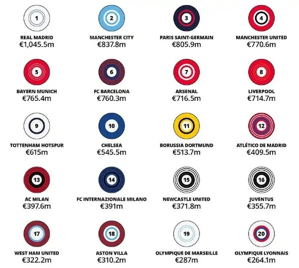 在2023-24赛季,利物浦收入达到7.147亿欧元,排在阿森纳之后,位居第8。不外需要着重的是,那年利物浦踢的是欧联杯,况且输给亚特兰大停步8强,是以带来较大经济损失。