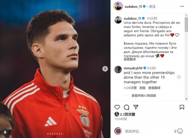 9月19日讯 欧冠联赛阶段首轮比赛,本菲卡主场2-3不敌卡拉巴赫。 着力于本菲卡的乌克兰中场苏达科夫赛后在ins上写说念:“一场惨痛的失利,咱们需要更执意,抬头挺胸赓续前进,感谢球迷们直到终末的撑捏。” 穆德里克援用穆帅名言辩驳:“我一个东说念主获得的冠军比其他19位西宾加起来皆多。” 这是穆里尼奥2018年执教曼联时辰在赛后发布会上的言论,昨日本菲卡刚刚官宣穆里尼奥出任球队主帅。......查看更多