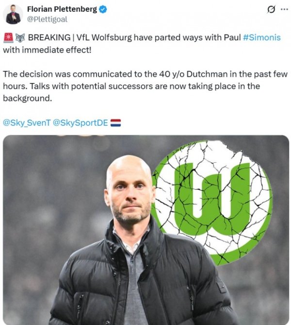 11月9日讯 据德太空记者Florian Plettenberg报谈,沃尔夫斯堡主帅保罗-西蒙尼斯下课。 报谈称狼堡在往日几个小时与保罗-西蒙尼斯进行了换取,并作念出最终分谈扬镳的决定,球队现在正在究诘接替者东谈主选。 沃尔夫斯堡本赛季德甲10轮积8分,位居倒数第五位。......查看更多