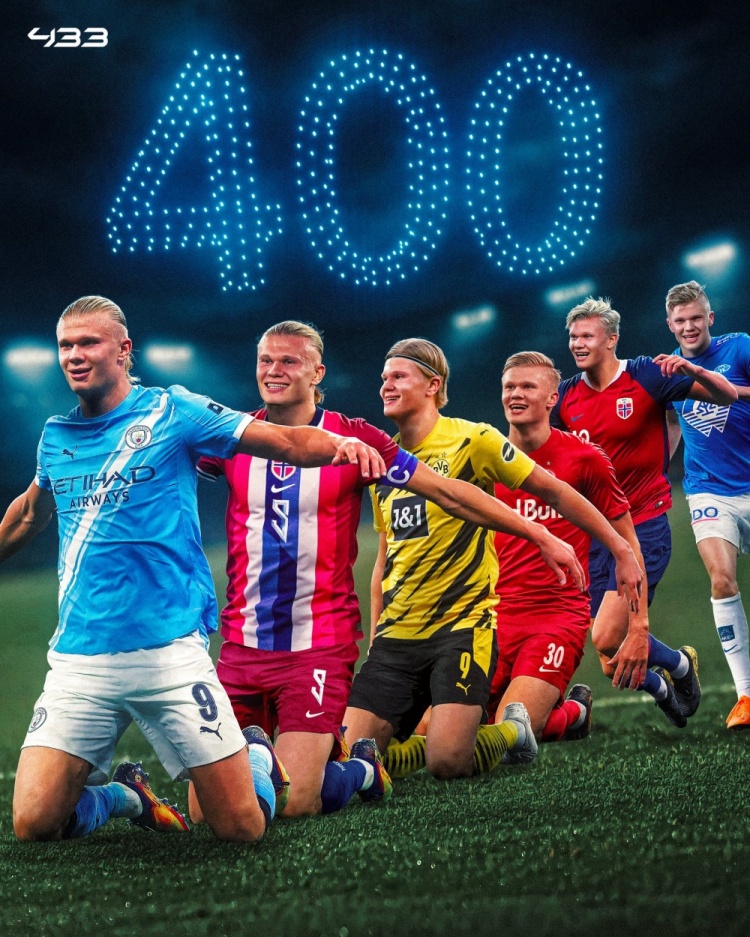 梗阻400球!哈兰德事业生计于今已参与401球,在曼城144球23助