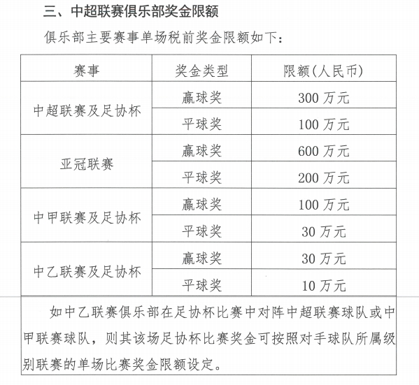 官方:中超球队联赛单场赢球奖不跳跃300万元,亚冠不跳跃600万