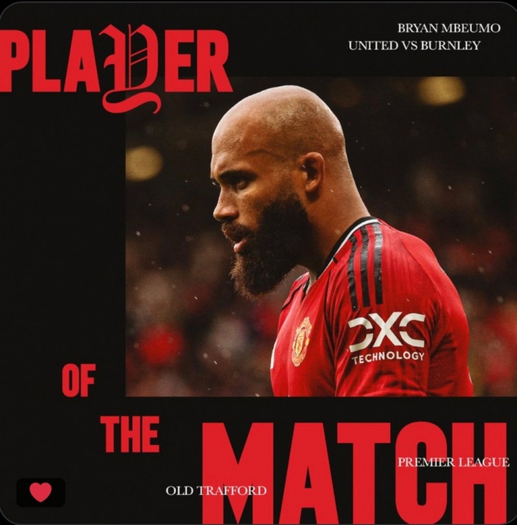 孝顺进球,曼联官方:姆伯莫当选曼联3-2伯恩利队内最好球员