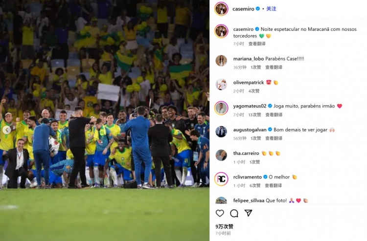 完胜!卡塞米罗社媒晒全队合照:和球迷在马拉卡纳渡过精彩的夜晚