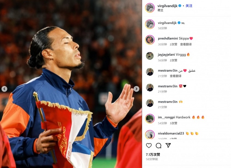 主场遭绝平!荷兰队长范迪克社媒自勉:勤奋付出,终会有薪金