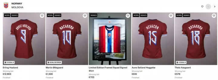 而哈兰德本场比赛的球衣最终的拍卖价为12903欧。