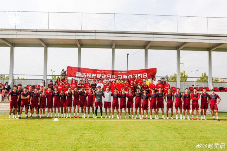 10月12日讯 上海海港俱乐部举行洞开日步履,俱乐部新闻官赵昊晨晒出了球队与球迷合影的全家福相片。