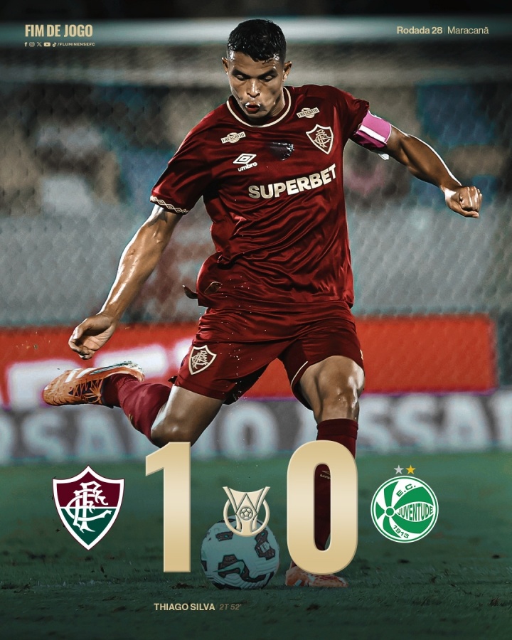 10月17日讯 巴甲第28轮,弗鲁米嫩塞主场1-0绝杀尤文图德,41岁中卫队长蒂亚戈-席尔瓦绝杀!