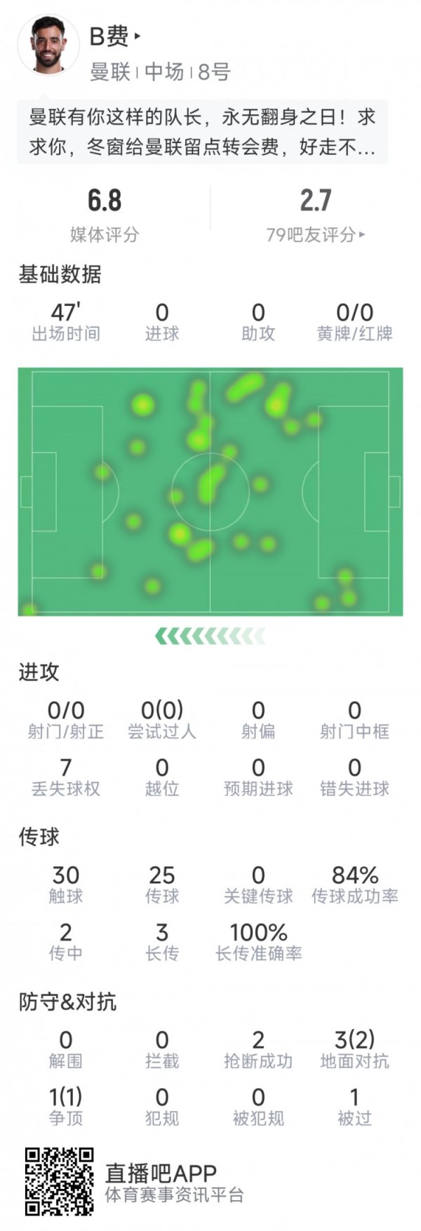 B费半场数据:射门、关节传球等多项挂零,2次抢断,4回击3到手