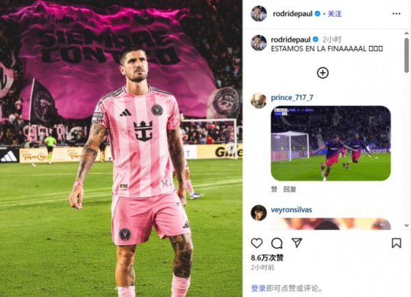 首发助迈阿密海外逆转取胜,德保罗发文庆祝:咱们晋级决赛