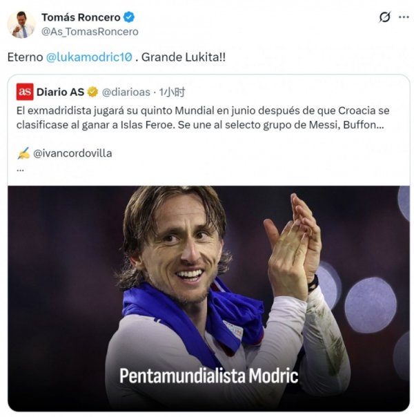 魔笛迎来第5届寰宇杯!龙赛罗社媒:不灭的莫德里奇,伟大的卢卡