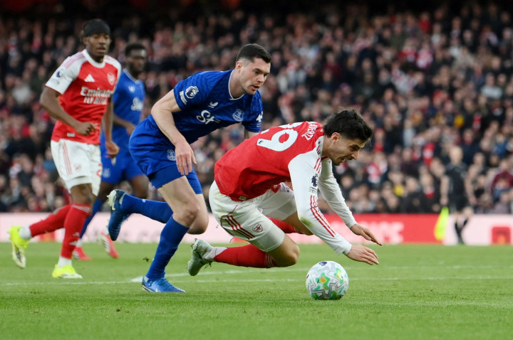 在3月14日枪手主场作战 2-0战胜埃弗顿的第24分钟,哈弗茨在迈克尔·基恩的接触下倒地。主裁判 安迪·马德利允许赛事 继续进行,而VAR裁判 斯图亚特·阿特维尔认为接触“极其轻微”。但回放显示,埃弗顿后场球员无意中踩到了哈弗茨的脚。