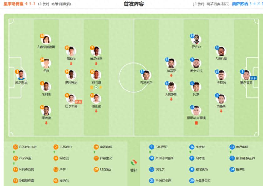 践诺比赛历程亦然如斯,磨合不充分的皇马在迫切端堕入了泥潭。尽管控球率高达71%,全场完成18次射门,但仅有5次射正球门,且射门质料说来话长,迫切效用低下的问题拨云见日。中场组织阑珊创造力成为制约皇马迫切的要道身分。楚阿梅尼四肢单后腰天然完成了防范任务,但在由守转攻形状出球逐渐,难以快速发动迫切。居莱尔和巴尔韦德的活动畛域大多集中在禁区外围,阑珊向禁区的有用渗入传球。全队传球到手率天然达到89%,但上前胁迫传球的数目显然不及,难以撕开奥萨苏纳的密集防范体系。