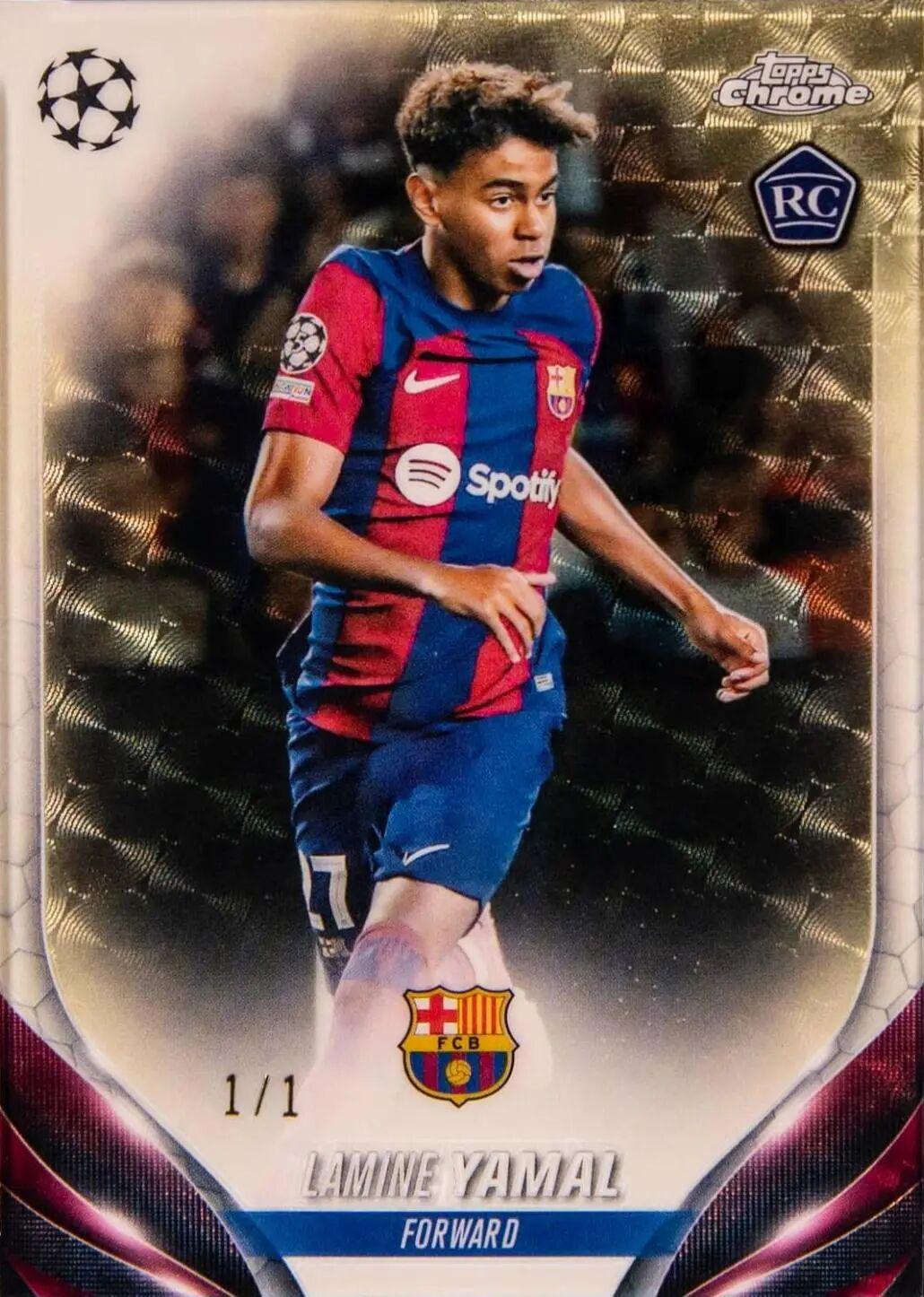 现在最具始终储藏和投资价值的可以是“2023-24 Panini Megacracks ,这也被视为了公认的亚马尔“真RC”,就像畴昔的梅西同款卡相似。