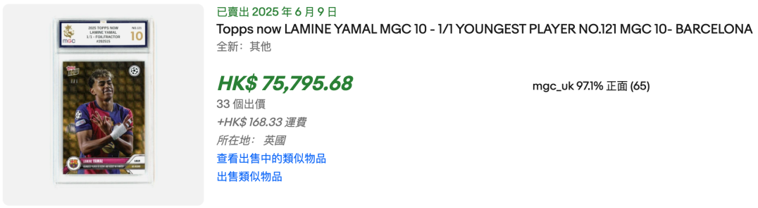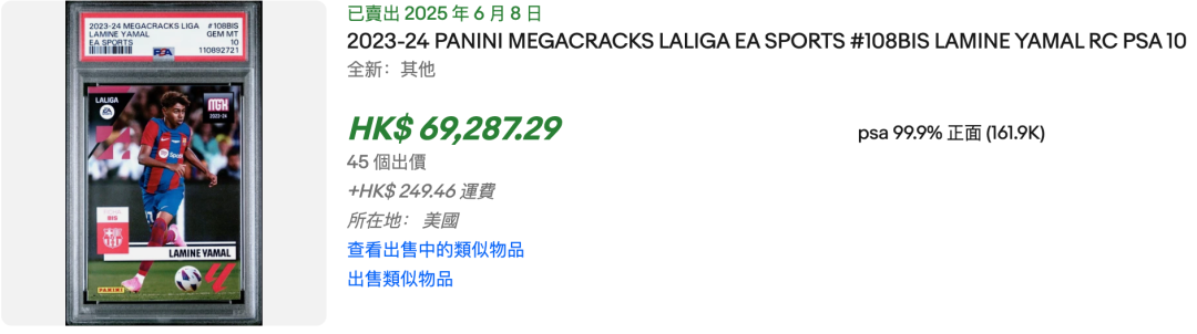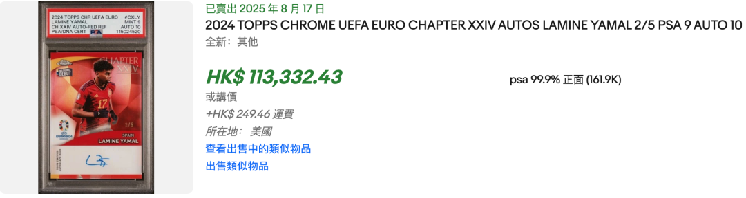 在价钱层面,亚马尔的卡市仍是出现了明显分层:在上文中提到的亚马尔\"真RC\"PSA10分,近期拍卖成交高点接近55000元,均价保管在6800好意思元把握;初学级的贴纸PSA10分价钱多聚会在3500–4000元区间,相较于其他卡种稍显性价比但增值空间有限;Topps Now系列卡常见成交价在700元高低、Topps Chrome系列的低编折射以及署名起拍价已在四位数,异日价值都备取决于球员能否达成超等巨星的后劲。