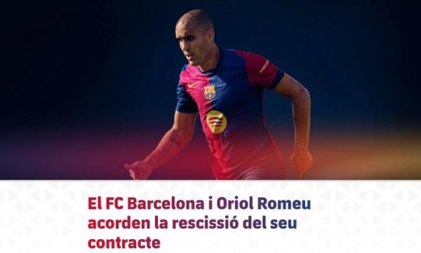 巴萨官方:与33岁罗梅乌协商一致解约,道喜改日一切凯旋