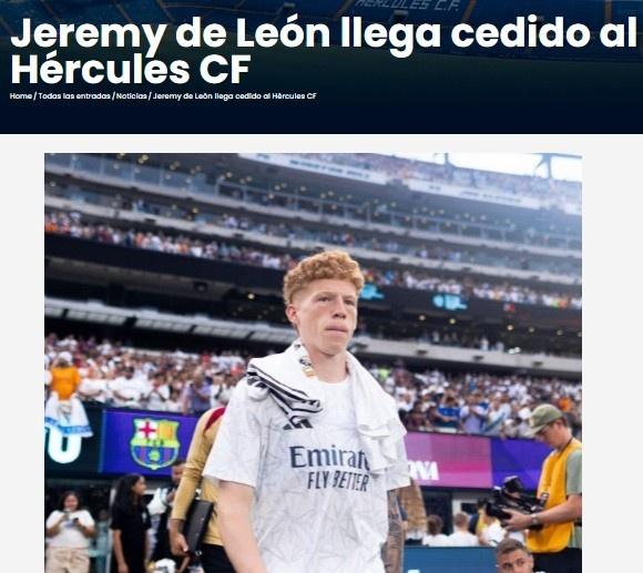 官方:皇马的波多黎各边锋杰里米-德莱昂被租出至赫库斯