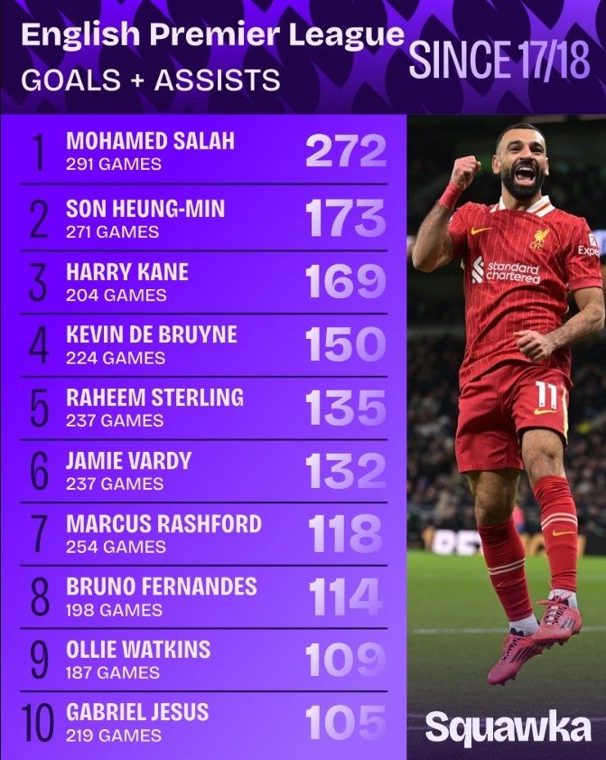9月9日讯 2017年加盟利物浦以来,萨拉赫在伏击端展示出了极高的恶果。说明Squawka的数据统计,埃及边锋共出战291场英超比赛,径直参与272球,同时断层跳跃。