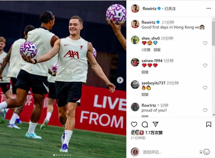 维尔茨随利物浦来到中国香港干涉季前赛,他在应对媒体上晒出多张覆按相片。