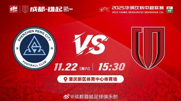比赛日 2025华润饮料中超联赛 第30轮 ⚽ 深圳新鹏城 vs 成王人蓉城 📅 11月22日(周六)15:30 🥅 肇庆新区体育中心畅通场 📺 成王人市播送电视台群众频谈、@咪咕视频 APP、转移高清、咪视界、@咪咕音乐 请安总共远征军和屏幕前补助蓉城的球迷家东谈主们!成王人,雄起!......查看更多