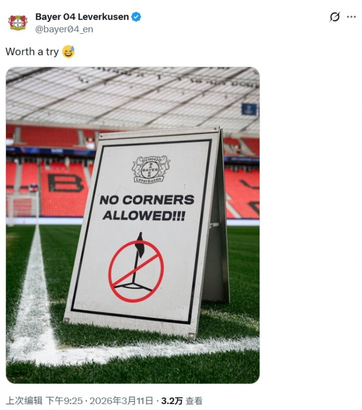 又来整活! 勒沃库森官推晒图, 改球场划线并在角旗上P阿森纳队徽