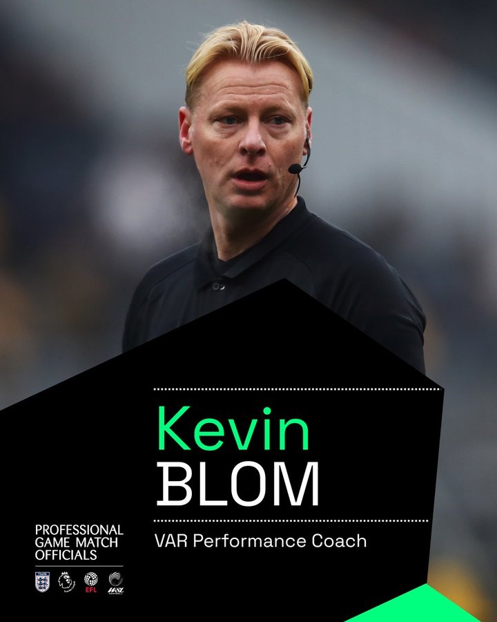 官方:凯文-布洛姆出任英格兰管事比赛裁判公司的VAR推崇讲明