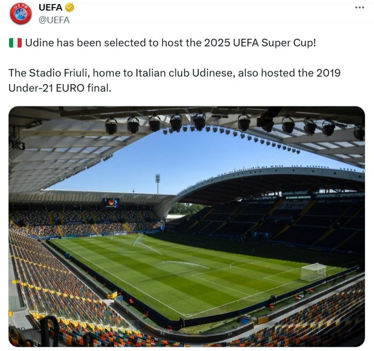 8月13日讯 巴黎圣日耳曼将在今晚的欧洲超等杯对阵热刺,比赛在乌迪内斯Bluenergy绽放场举行,The Athletic也对这座球场进行了先容。
