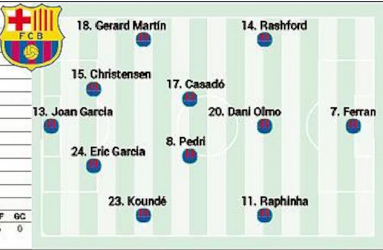 阿斯瞻望巴萨首发:奥尔莫在列,拉什福德、费兰、拉菲尼亚三叉戟