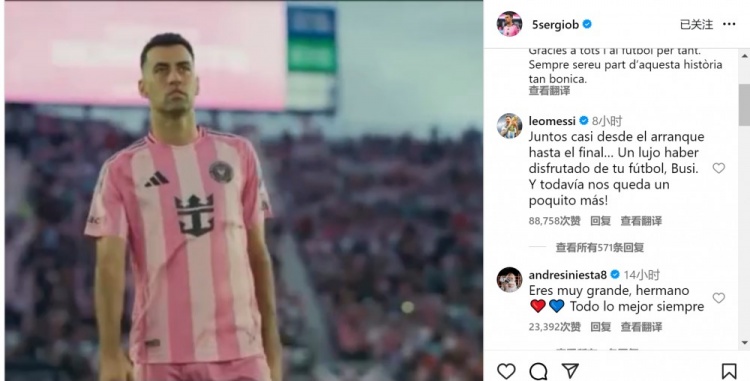 9月27日讯 布斯克茨社媒书记本赛季扫尾后退役,梅西留言问候。