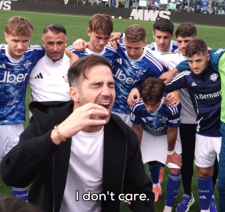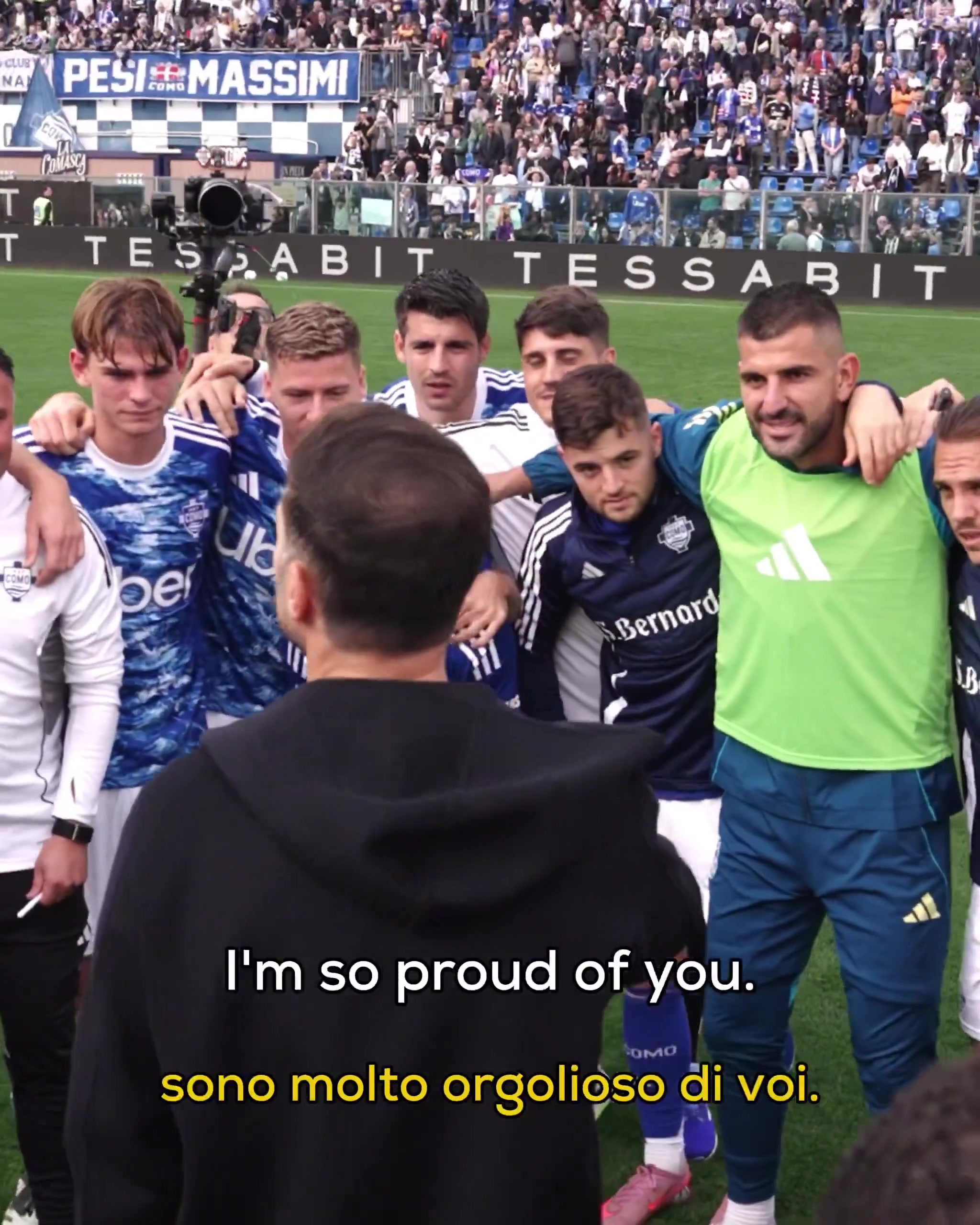 赛后科莫官方发布主帅法布雷加斯喊话的视频,法布雷加斯喊谈:惟有一个词,惟有一个词,我为你们感到极度自爱!