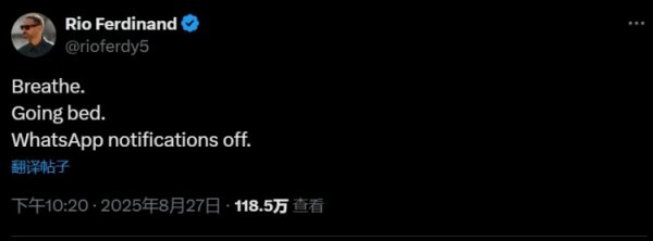 气炸了😡费迪南德社媒:深呼吸,睡眠去了,WhatsApp奉告已关闭