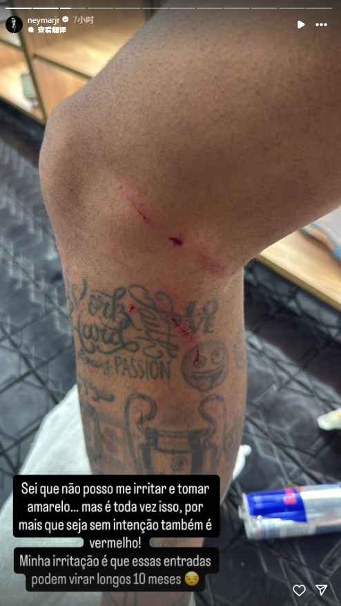 伤疤累累!刚复出的内马尔晒腿部划痕:每次齐可能发生