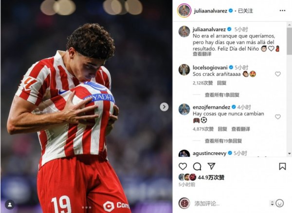 8月18日讯 西甲首轮比赛,阿尔瓦雷斯猖狂球破门,马竞客场1-2不敌西班经纪东说念主, 阿尔瓦雷斯社媒晒出庆祝进球的相片,配文:“这不是咱们思要的开局,但有一些日子杰出了比赛成果,儿童节惬心!” 注:阿根廷儿童节为8月的第三个周日,本年是8月17日......查看更多